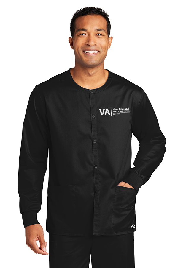 Description Wonderwink unisex work flex snap-front scrub jacket. 65/35 poly/cotton, 5 snap front closure, top loading front pockets with interior pocket, rib knit cuffs, classic fit.