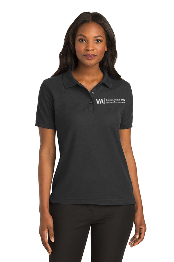 Port Authority ladies pique blend polo available in black, navy or charcoal grey. 5 oz. 65/35 cotton/poly blend.
