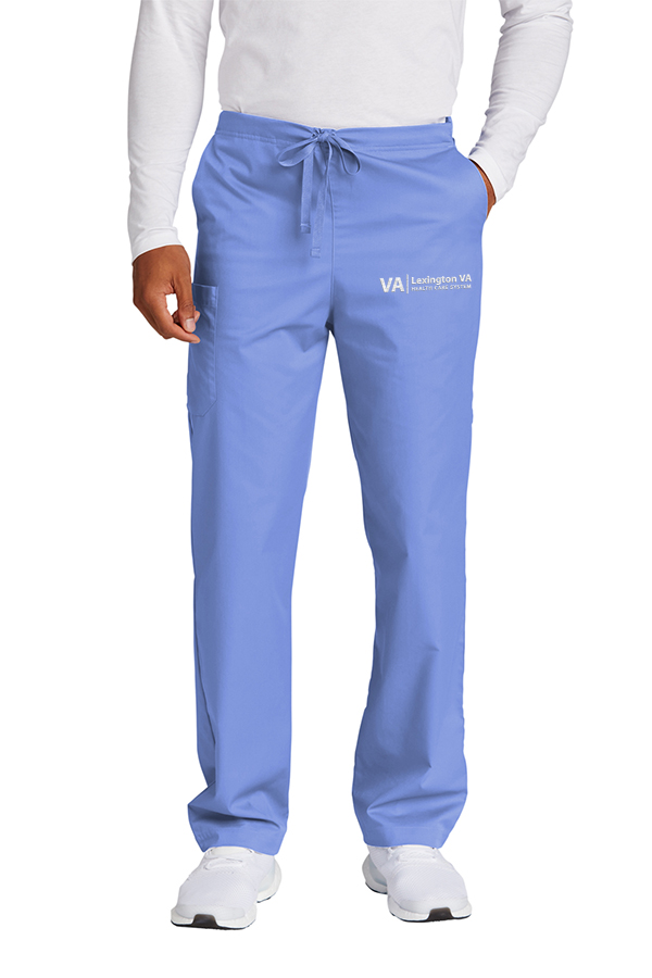 Wonderwink men's workflex cargo scrub pants. 65/35 poly/cotton, mechanical stretch, drawstring waist, front slash pockets, right side cargo pocket with pen slot, straight leg, classic fit.