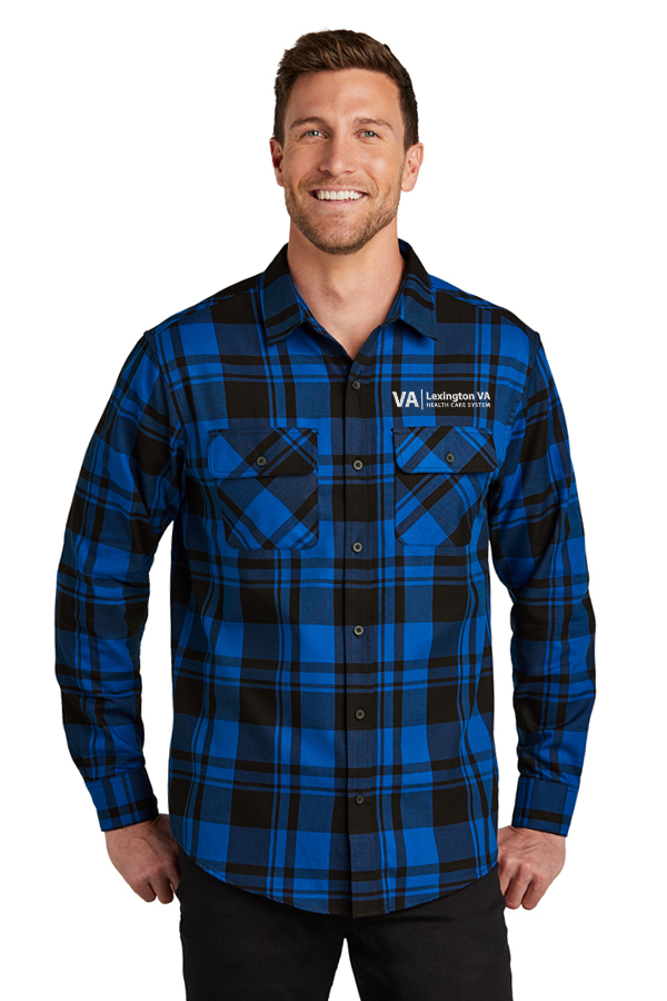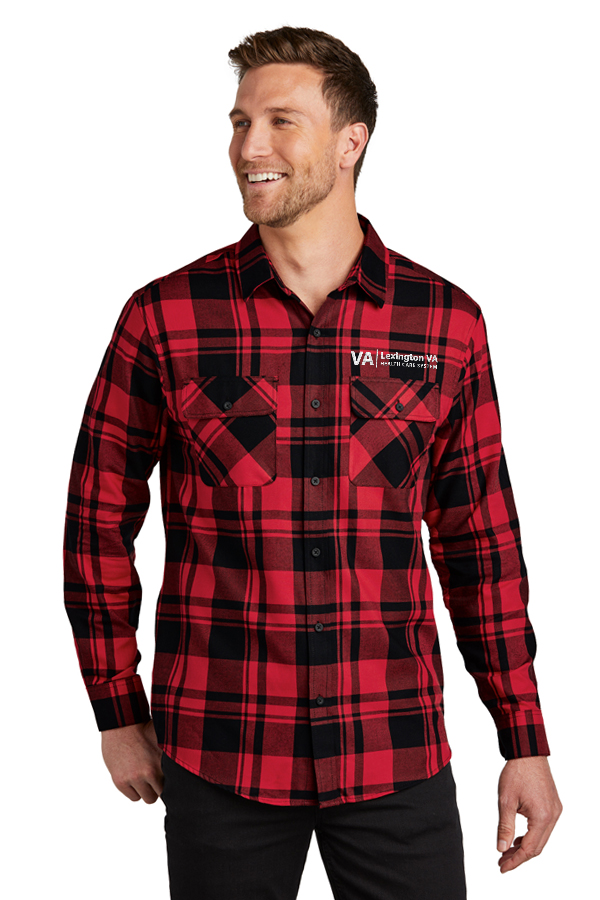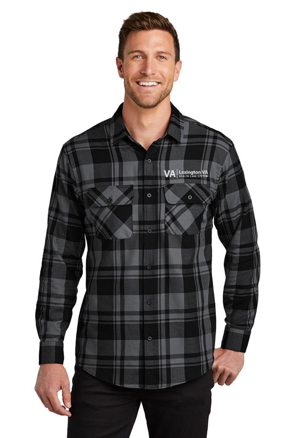 Men's Flannel Shirt W668 Port Authority Plaid Flannel Shirt. 4.4-ounce 60/40 cotton/poly flannel. Lightly brushed for softness, open collar, double chest pockets with flaps, and rounded adjustable cuffs.