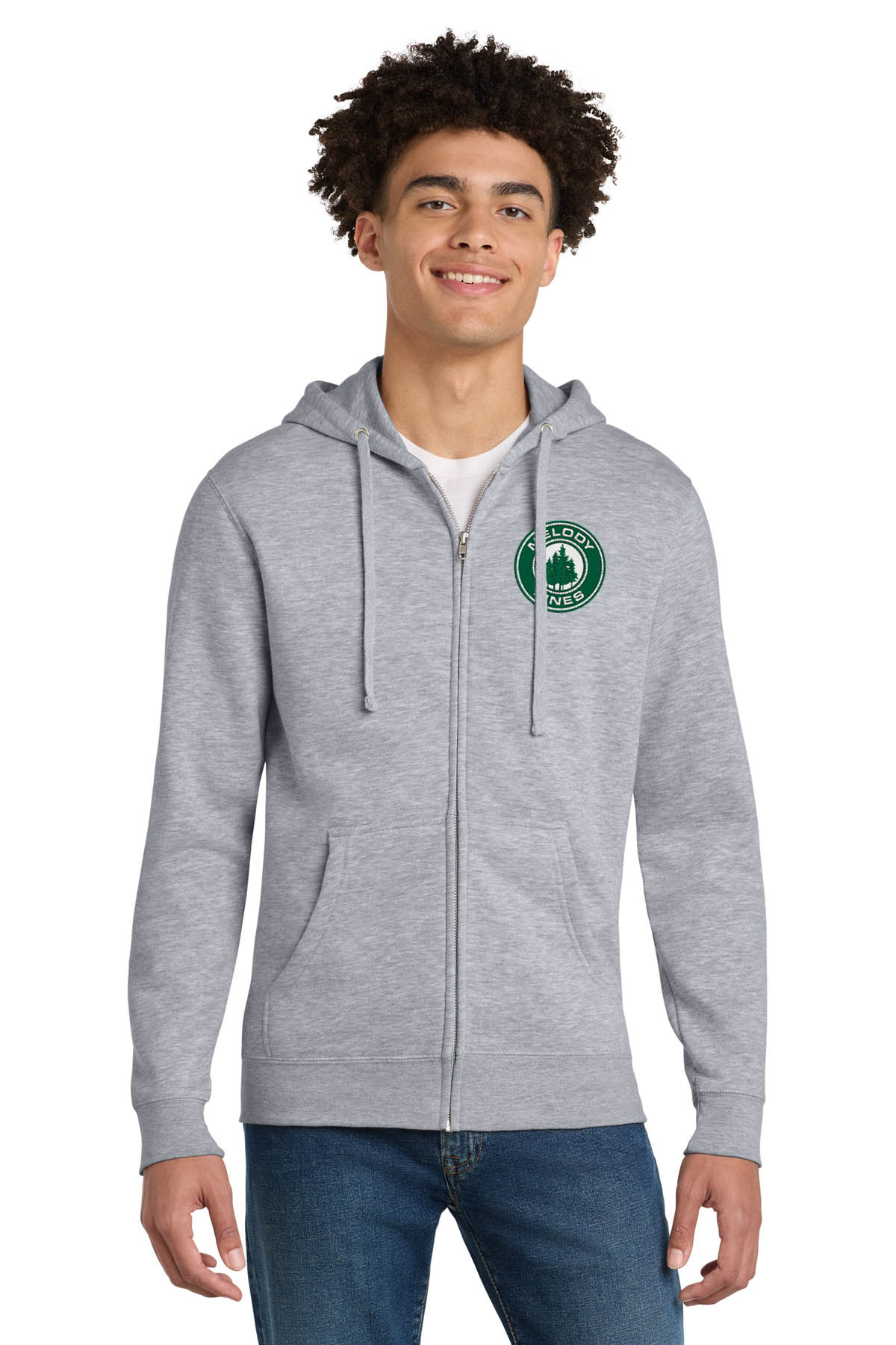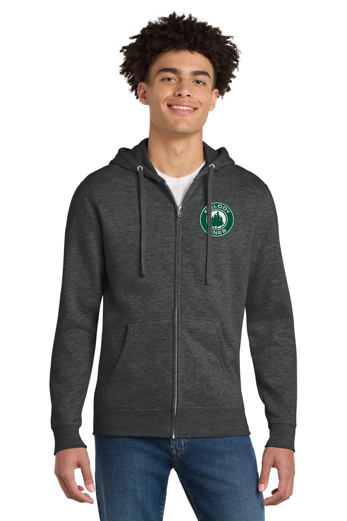 Left-chest embroidered with Melody Pines circle logo